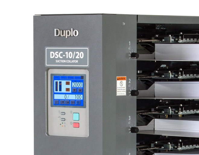 The Duplo DSC-10/20 suction collators have built-in resilience, with a dual-fan technology and air management system that can be fine-tuned for each independent bin. One fan in each bin provides even air separation, while a second generates a vacuum for the belt suction feeder, ensuring that sheet feeding is efficient and reliable.