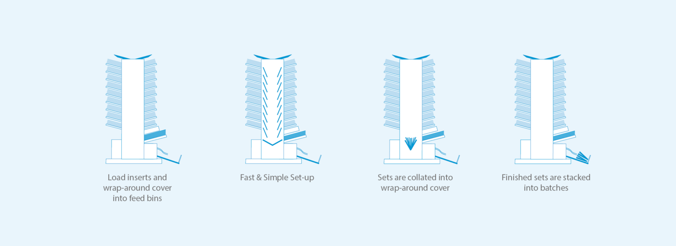 Duplo Esper DM 230V Pro is a unique system that quickly and reliably collates printed advertising together within a wraparound cover, ready for distribution. Suitable also for decentralising and as a complement to a larger system for short runs. Instead of slow turnaround and sorting errors from hand collation of advertising materials such as leaflets, brochures and reply-paid postcards, offer 100% set integrity and an automated service with the Duplo Esper DM 230V Pro