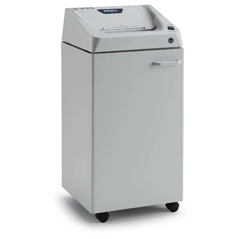 85-liter high quality steel cabinet holds high volume of shredded materials.