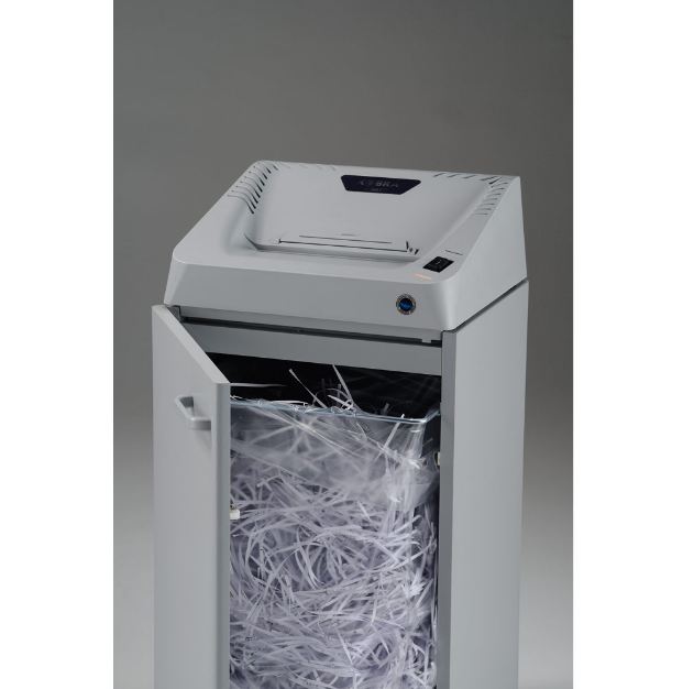 Mid-size cross cut shredder suitable to shred computer paper with tractor-feed margins thanks to the wide 300 mm throat.