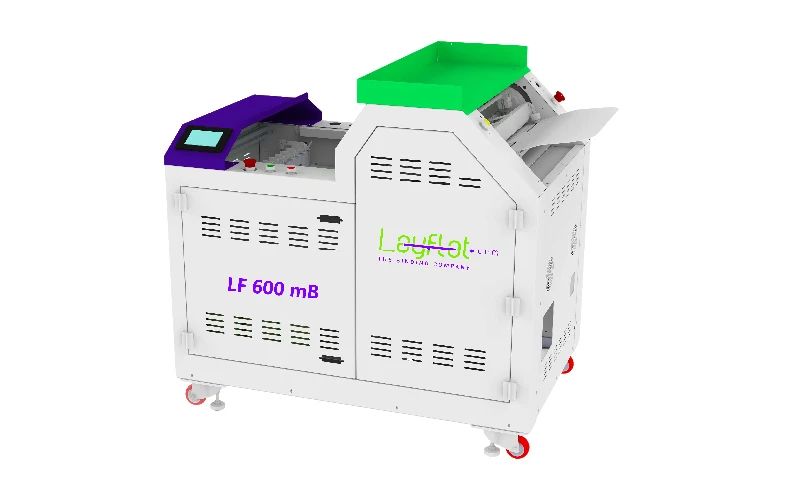LF 600 mB is a semi automatic book block system which produces Lay Flat book blocks from single folded sheets. It can make photo book not only by gluing paper back to back but also by inserting cardboard between sheets.